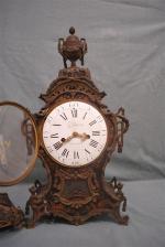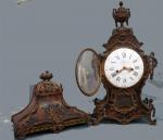 CARTEL à décor au vernis Martin imitant la laque noire, rouge et or, ornementation en bronze doré