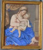 ECOLE FRANCAISE du XVIIIème siècle Vierge à l'enfant Gouache et aquarelle sur vélin 23,5 x 19,5 cm