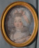 Pastel ovale, cadre d'origine en bois mouluré et doré d'époque louis XVI