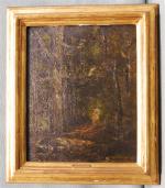ECOLE DE BARBIZON Paysage et sous bois Huile sur panneau, porte un cartouche Diaz de la Pena, 27 x 21 cm