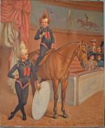 Joseph Emile MILLAUCHAUD (1856-?) Le cirque, la parade Huile sur toile signée en bas à droite et datée 1889 61 x 50 (petit accident)
