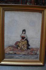 A. LONGE L'andalouse, 1875 Huile sur panneau signée et datée en bas à droite 37 x 27.5 cm (à vue)