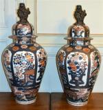 JAPON Paire de potiches couvertes en porcelaine à décor Imari XIXème siècle H. : 95 cm