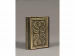 Coran, Turquie ottomane, signé et daté 1260H/ 1844 Manuscrit sur papier, en arabe, de quinze lignes par page en écriture naskhî, à l'encre noire et rehauts rouges. Texte agrémenté de rosettes dorées de fin de versets, accompagné dans les marges de mandorles florales polychromes et or marquant les juz et hizb. Titre des sourates en lettres blanches dans des cartouches dorés bordés de rinceaux fleuris. Frontispice en double page richement enluminé en polychromie et piqueté or, en unwân formé de cartouches dorés sur fond doré enrichi de fleurettes encadrant les textes en réserve dans des médaillons circulaires, dans une composition de mandorles dorées agrémentées de fleurettes. Les dernières sourates sont suivies de prières de fin du Coran, et le colophon donne le nom du copiste : " Khodayarizadeh Seyyed Mustafa, pour son maître al-Haj Rajab al-Fordi, daté 1260H. / 1844 ". . Reliure à rabat en cuir brun à décor peint aux deux ors d'une composition symétrique d'enroulements végétaux fleuris dorés. Dimensions reliure : 16,5 x 11,5 cm État : étui en feutre rouge, rabat détaché