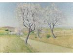 Achille LAUGÉ (1861-1944) La route vers Cailhau au printemps, circa 1905 Huile sur sa toile d'origine signée en bas à gauche 82 x 117 cm (petites restaurations ) Provenance : - Collection particulière, Val de Loire, par descendance au propriétaire actuel À la demande de l'acquéreur et à sa charge, un certificat de Madame TAMBURINI confirmant l'authenticité et la datation de cette oeuvre pourra être délivré. Achille Laugé est né et a passé l'essentiel de sa vie dans l'Aude, dans un espace géographique très limité dont l'épicentre est Cailhau. On est tenté de classer Achille Laugé dans le mouvement néo-impressionniste. Les ressemblances entre les premiers tableaux divisionnistes d'Achille Laugé et les toiles de Seurat sont évidentes , même division de la touche par petits points et même volonté de simplification monumentale. Toutefois, sa culture instinctive lui ait rejeté l'enseignement académique et sans avoir le moindre contact avec les impressionnistes, le peintre développe une vision du monde très personnelle fondée sur la décomposition du ton par petites touches claires juxtaposées. Cet univers étroit a suffi à Laugé pour créer une oeuvre de paix et d'harmonie, colorée et dépourvue de pathétique, lavée d'angoisse ou d'amertume , elle doit à la seule lumière l'état de grâce que lui-même en reçût. Source Pierre Cabanne