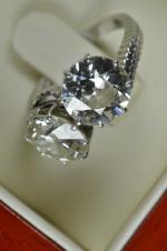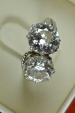 BAGUE Toi et Moi en or gris et platine sertie de 2 diamants demi taille pesant chaque 2.50 carats poids 8.6 g TDD 54