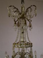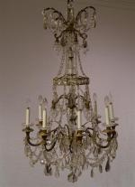 Important LUSTRE en cristal et bronze, dit "Marie-Antoinette", à huit bras de lumière, à décor de pendeloques, plaquettes, fleurettes, boule, la partie haute avec une couronne à mi-hauteur, les bobèches signées de la Maison "Gagneau & Cie"