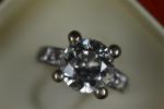 BAGUE or gris au centre un diamant taille ancienne 4ct20 environ épaulé de 8 diamants poids brut: 9gr TDD 55