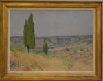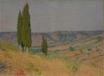 Paysage aux cyprès aux environs de Saint-Cirq-Lapopie, circa 1930-1935