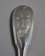 COUVERT en argent, modèle filets, gravé d'armoiries sous couronne de comte Bordeaux, 1784-1786 Maitre orfèvre: Jacques GEORGEON, reçu en 1779 Poids: 184 gr