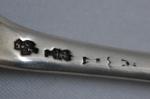 COUVERT en argent, modèle uniplat, chiffré Nantes, XVIIIème Maitre orfèvre: Marie Anne ASSELIN veuve François GUILLOU ou Jeanne THEBAUD veuve Etienne GODOFRE Poids: 160 gr