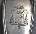COUVERT en argent, modèle filets, la spatule gravée d'armoiries ecclésiastiques sous couronne de marquis avec Croix de Malte Paris, 1783 Maitre orfèvre: Pierre Nicolas SOMME, reçu en 1768 Poids: 186 gr