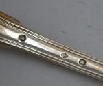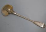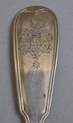 LOUCHE en argent, modèle filets, la spatule gravée d'armoiries d'alliance Paris, 1819-1838 Orfèvre: PLH L.: 37 cm Poids: 276 gr