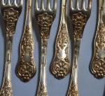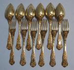 Suite de six COUVERTS A DESSERT en vermeil, modèle violoné à filets coquilles et feuillage Paris, 1819-1838 Orfèvre: Joseph BOURDON Poids: 650 gr