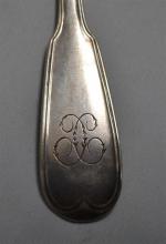 CUILLERE A RAGOUT en argent, modèle filets, chiffrée Paris, 1819-1838 L.: 30 cm Poids: 146 gr (légers chocs)