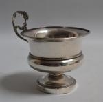 TASSE A CHOCOLAT en argent reposant sur un piédouche, l'anse figurant une corne d'abondance Paris, 1819-1838 Orfèvre: Jean Pierre BIBRON, reçu en 1798 H.: 12 cm Poids: 190 gr