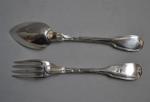 FOURCHETTE A DESSERT et CUILLERE A DESSERT en argent, modèle filets Paris, 1819-1838 Poids: 102 gr