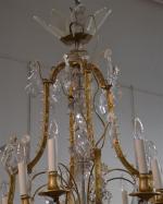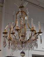 Important LUSTRE à douze bras de lumière de forme cage en bronze, cristal et verre à décor de plaquettes H.: 120 cm D.: 90 cm