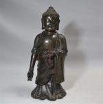 CHINE Bouddha en bronze H.: 30 cm (traces de polychromie)