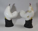 CHINE Paire de coqs en porcelaine à décor polychrome H.: 30.5 cm (restaurations à l'un)