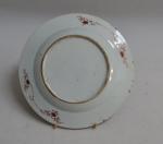 CHINE Compagnie des Indes Assiette ronde en porcelaine à décor famille rose XVIIIème D.: 22.5 cm (légères égrenures au revers)