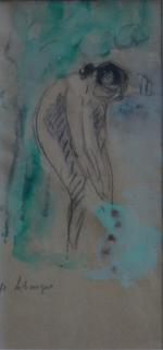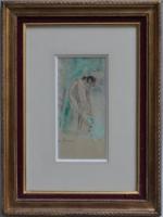 Henri Baptiste LEBASQUE (1865-1937) Nu à sa toilette Aquarelle et crayon conté signée en bas à gauche 19 x 9 cm à vue