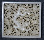 CHINE Plaque en jade céladon pâle De forme carrée, à décor ajouré d'un dragon évoluant au milieu de fleurs et feuillages XIXème Dimensions : 6,4 x 6,4 cm