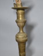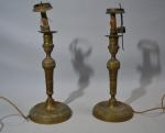 Paire de FLAMBEAUX en bronze XIXème H.: 26 cm (montés en lampe, percés pour l'électricité)