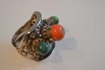 BIJOU de cheveux en argent, à décor de pierres, travail ancien du Tibet, poids : 42 g