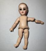 POUPEE tête porcelaine yeux ouverts bouche fermée, la tête marquée EJ 1, le corps en...