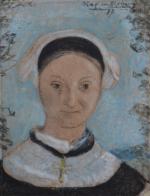 Charles MILCENDEAU (1872-1919) Portrait d'une jeune maraichine, 1897. Pastel signé et daté en haut à droite 10.5 x 8 cm (petite déchirure)