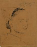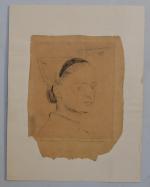 Charles MILCENDEAU (1872-1919) Portrait de maraichine, 1899. Dessin signé et daté en haut à droite 18 x 13.5 cm (importantes déchirures)