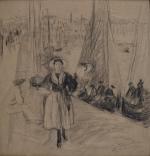 Charles MILCENDEAU (1872-1919) Les Sables d'Olonne, sablaise tenant son panier de sardines sur le port, 1901....