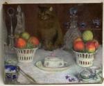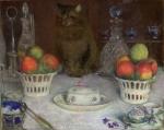Charles MILCENDEAU (1872-1919) Nature morte au chat Pastel signé en bas au centre 49.5 x 61.5 cm (frottements et manques)