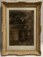 Charles MILCENDEAU (1872-1919) Portrait de maraichine dans un paysage arboré, 1896-98. Dessin signé et daté en bas à gauche et au centre 44.5 x 31 cm à vue
