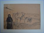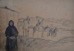 Charles MILCENDEAU (1872-1919) Vieille femme à Ledesma, 1901. Dessin signé et daté en bas à droite 36 x 51.5 cm (petites traces d'humidité)