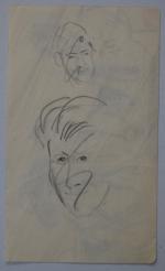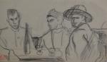 Jean LAUNOIS (1898-1942) Trois personnages au bistrot Dessin avec cachet du monogramme en bas à gauche, au dos une étude de visages 12 x 20 cm (pliures)