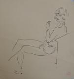 Jean LAUNOIS (1898-1942) Prostituée assise Encre avec cachet du monogramme en bas à droite 24.6 x 23.2 cm (petites déchirures, pliures)