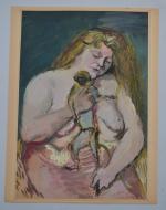 Jean LAUNOIS (1898-1942) Prostituée et son singe Gouache signée en bas à droite 63 x 47.5 cm