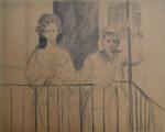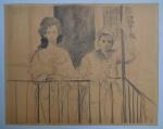 Jean LAUNOIS (1898-1942) Alger, les demoiselles, 1920. Dessin signé, daté et situé en haut à gauche 30 x 37.5 cm (pliure)