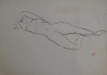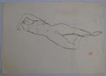 Jean LAUNOIS (1898-1942) Nu allongé Encre avec cachet du monogramme en bas à droite, au dos un croquis 26.5 x 37 cm (petites traces d'humidité)