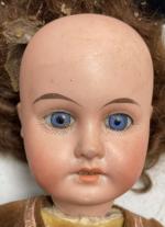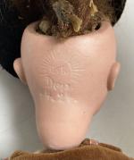 Poupée GK / DEP - tête porcelaine marqué en creux "GK - DEP - 44-24" , yeux sulfures, corps droit, habits d'origine
