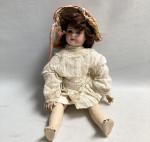 Poupée - tête porcelaine marqué en creux "1907" , yeux sulfures bleus, corps articulé - 55 cm