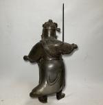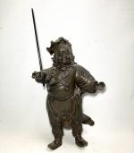 INDOCHINE Sujet en bronze représentant un combattant H. totale: 42 cm