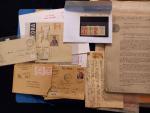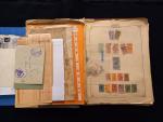 Dans deux chemises, lot de timbres fiscaux Etrangers anciens, divers timbres et vignettes, quelques lettres et divers documents. A étudier