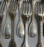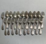 Douze FOURCHETTES et neuf CUILLERES en argent, modèle filets 1809-1838 Poids: 1 kg 785
