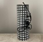 Suspension tronconique en faïence à décor en réserve à la paraffine de pavés blancs et repercée d'une frise de disques