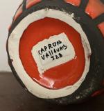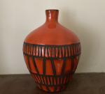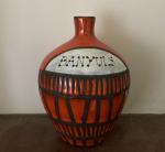 Roger CAPRON (1922-2006) « Banyuls » forme S5 rouge à décor géométrique à réserve de paraffine Bouteille...