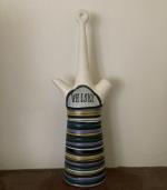 Roger CAPRON (1922-2006) Whisky forme S7 émail blanc et et bandes polychromes Bouteille à alcool en faïence stannifère signée et située à Vallauris sous la base H.: 36 cm