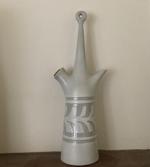 Roger CAPRON (1922-2006) Fine forme S7 émail gris bleu décor en reserve d'une branche Bouteille à alcool en faïence stannifère signée et située à Vallauris sous la base H.: 36 cm